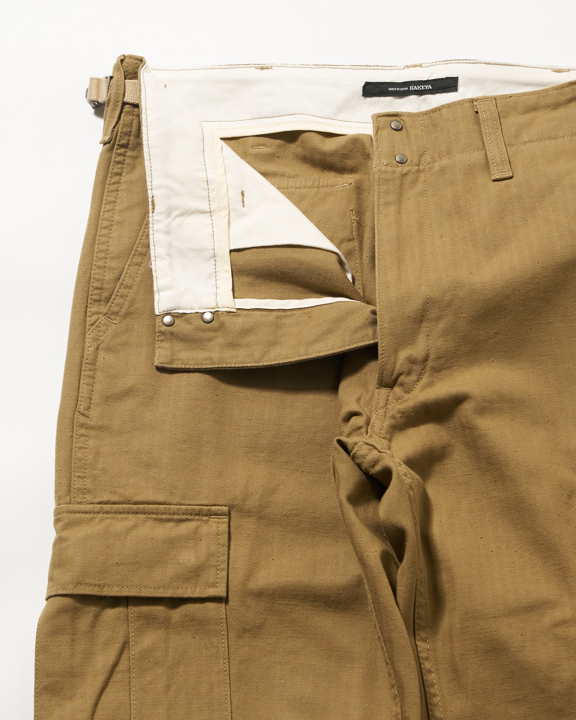 最高級岡山産カラーヘリンボンの大人カーゴパンツ。